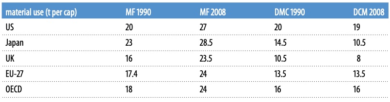 In recent decades, some advanced economies have shifted from manufacturing to services and become more purely consumer societies. Domestic material use stopped increasing.
