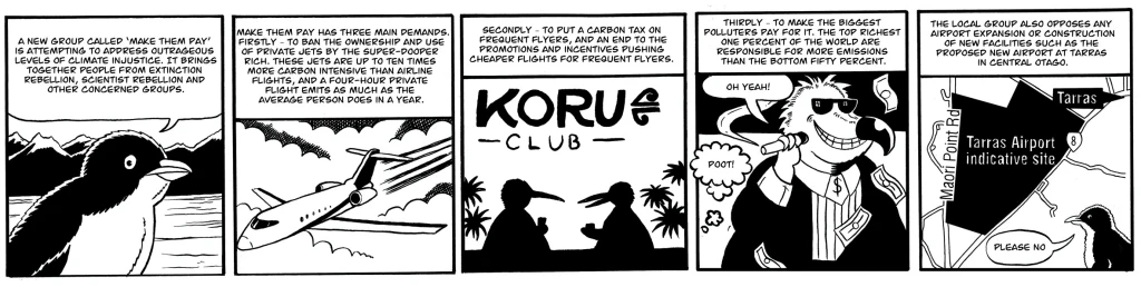 A Change in the Weather is a climate cartoon by Abe Hunter that appears each Saturday in the Otago Daily Times. See the full series at https://artordeath.wordpress.com/2022/11/06/a-change-in-the-weather/.